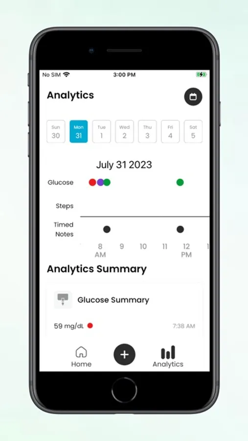 View your health status at a glance. This includes blood sugar trends and averages along with your steps, sleep, and heart rate. You can also create custom goals and targets.
