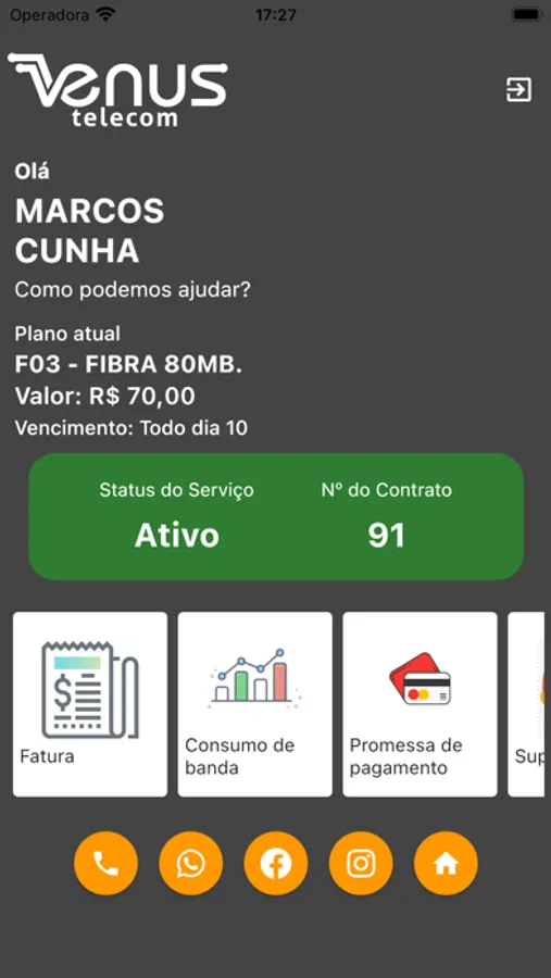 No app da Central do Assinante da Venus Telecom / Facilnet você pode: