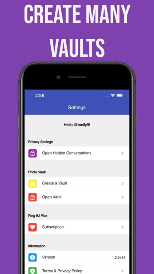 ◉ Encrypted photo vault: Using the latest vault gallery lock technologies, Ping IM enables you to create a pic lock photo vault to hide pictures. Have a safe vault by setting your own pin and hide pictures for maximum privacy and security.