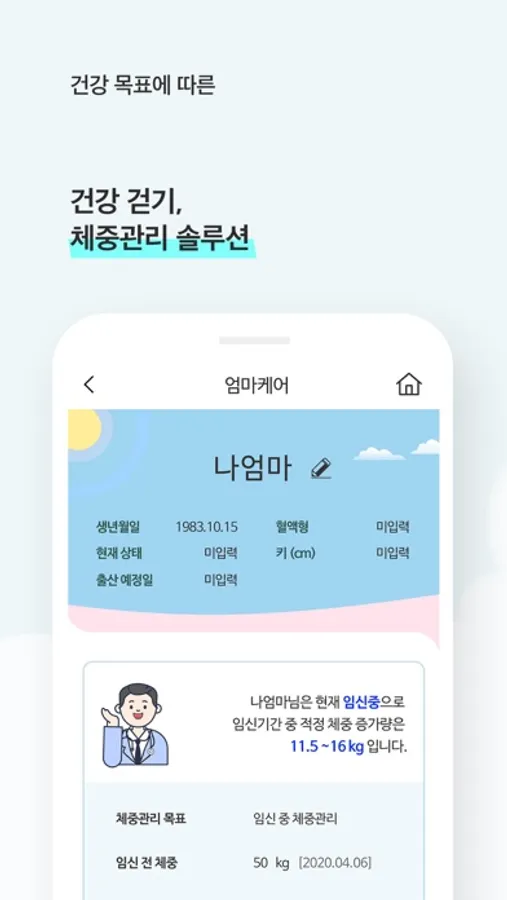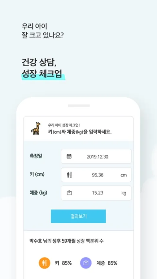 건강 목표에 따른 건강걷기, 건강한 임신출산을 위한 콘텐츠, 우리 아이의 바른 성장을 위한 성장체조, 자세 측정, 열 관리, 예방접종 수첩, 건강검진 우대 서비스, 전문 병원 예약 서비스 등 건강관리를 위한 다양한 서비스를 받아 보실 수 있습니다.