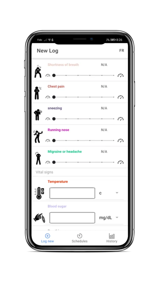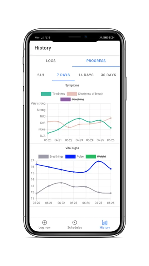 This App allows you to record the most common symptoms (e.g. coughing, sneezing, fever) along with the most common vital signs (e.g. pulse, temperature, blood sugar) and track their progress over a period of time from one to 30 days.