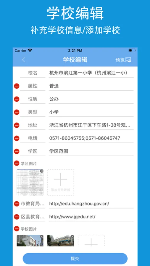 # 汇集全国小学的综合信息,如地址、电话、教育局、报名入口、图片等