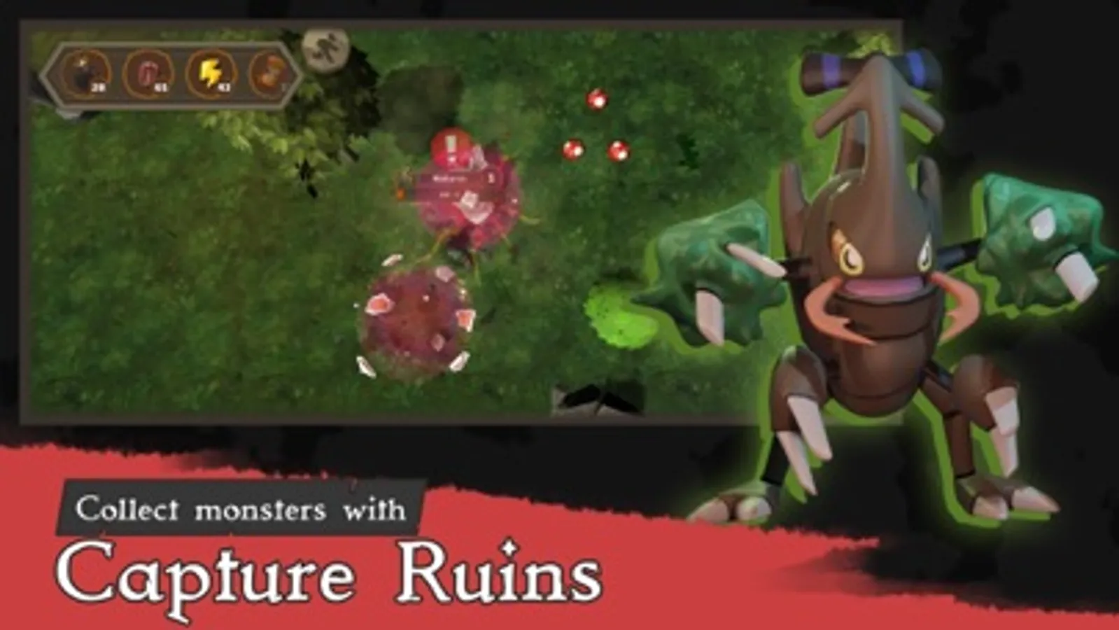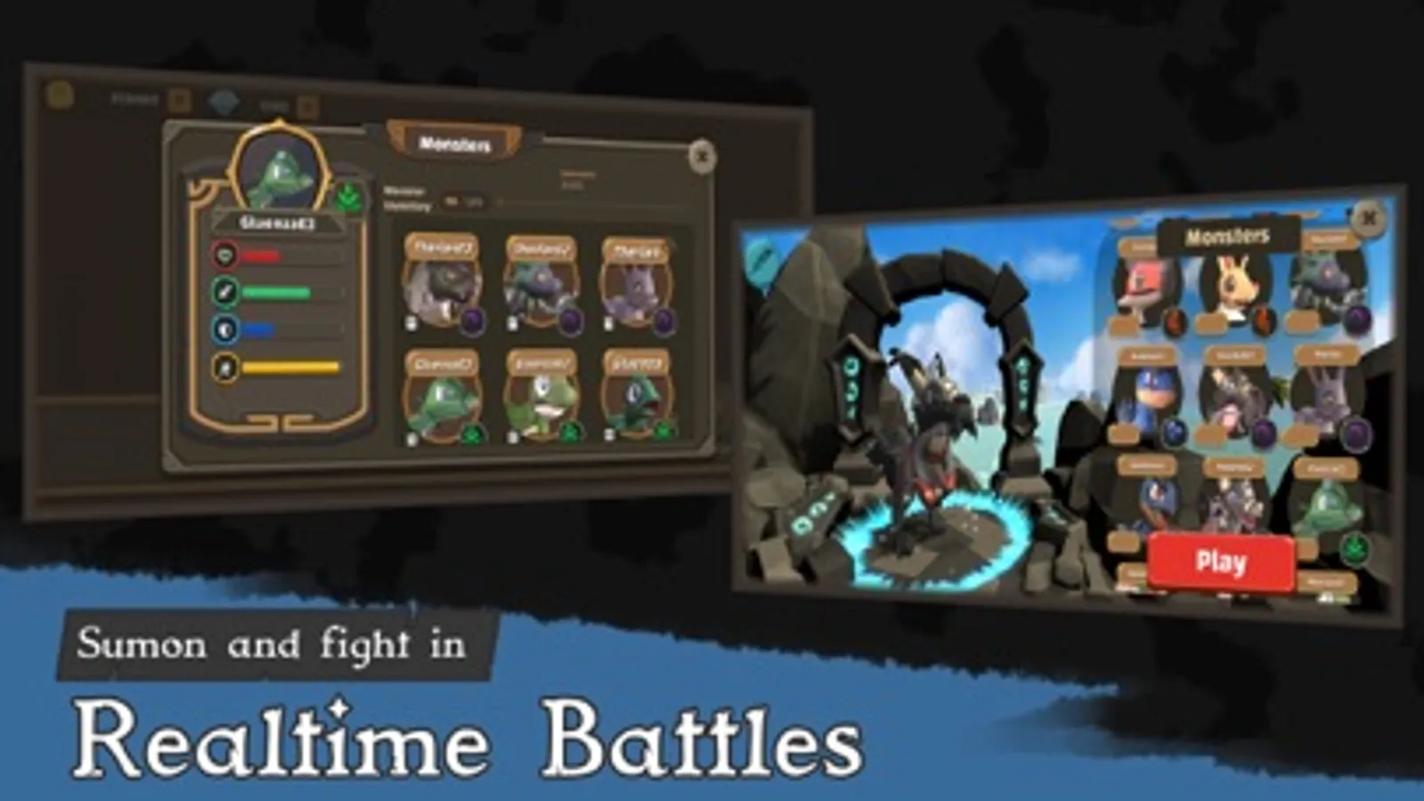 Each monster has its own unique stats, Attack, Defence, Health, and Speed. These stats all help in the real-time battles you encounter. Each monster evolution line has its own abilities and mixes with the monster's typing. These stats and abilities complement the monster themselves and form a unique playing style.