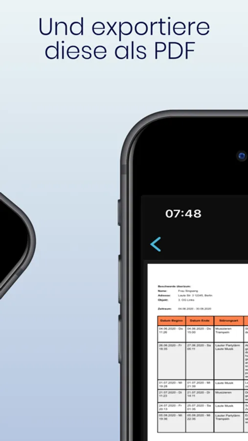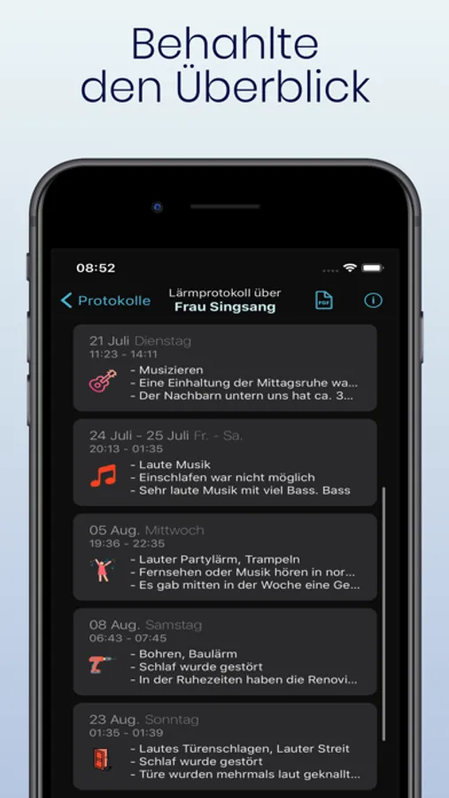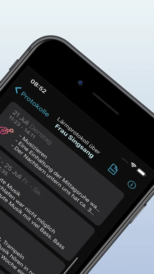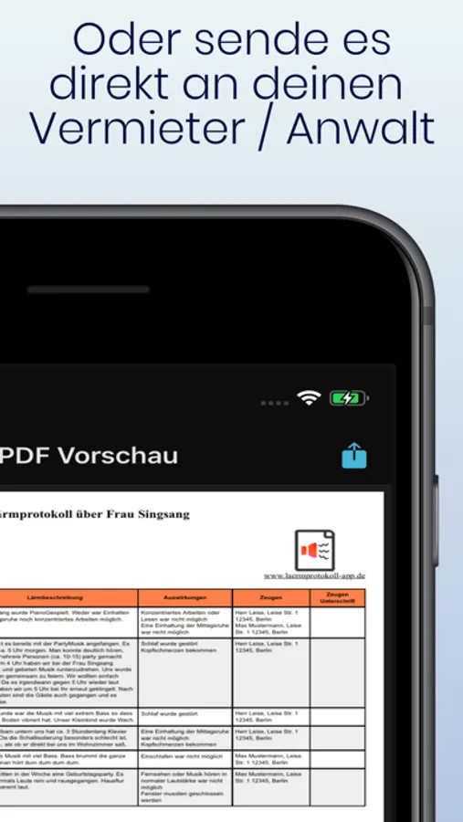 - Schaue dir das Lärmprotokoll direkt in der App an, bevor du es teilst