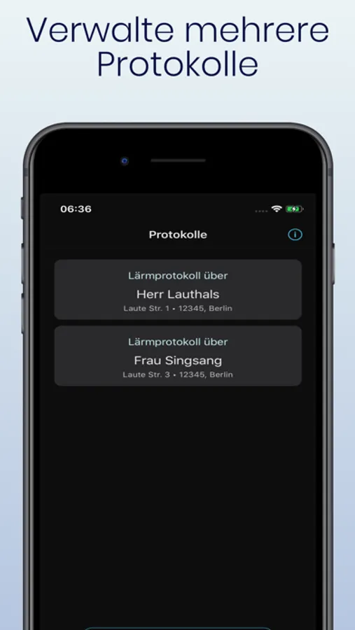 - Du kannst mehrere Lärmprotokolle erstellen und diese bearbeiten oder löschen