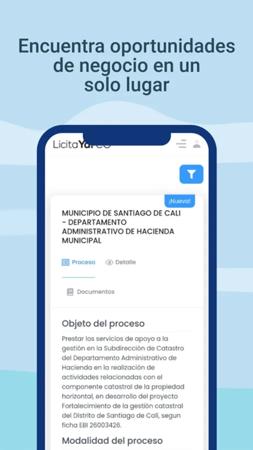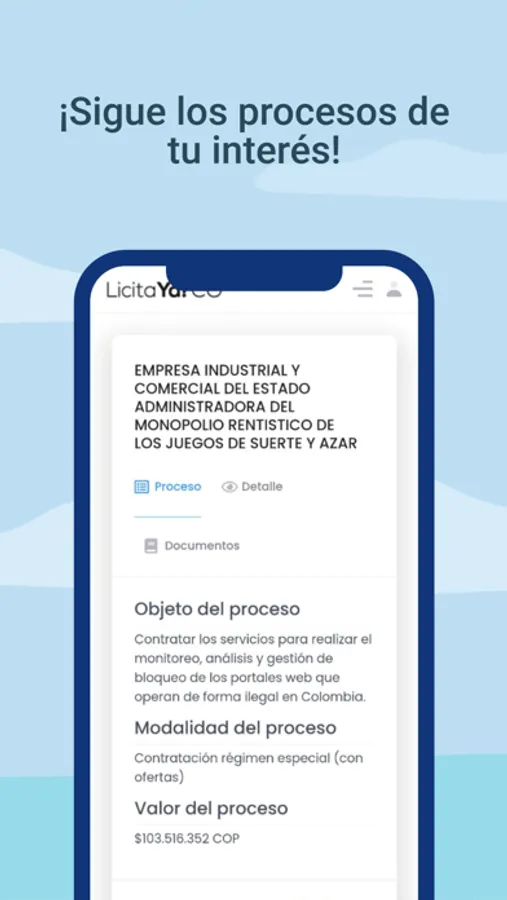 LicitaYa! Es una App para que estés informado 24/7 de todas las licitaciones de Colombia que te interesen y cumplan con tú perfil para que no dejes pasar ninguna oportunidad de negocio y tengas una ventaja sobre otras empresas.