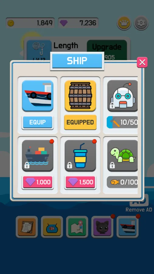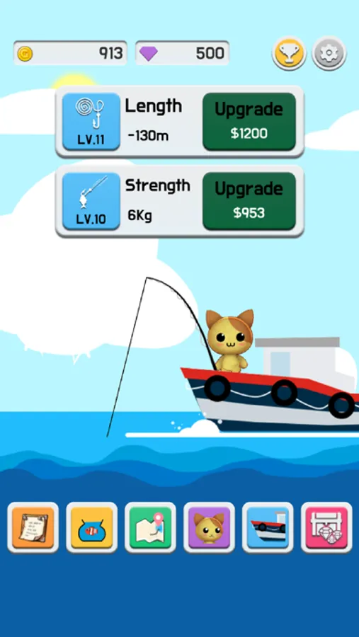 Improve your fishing line to go deeper and catch more fish!