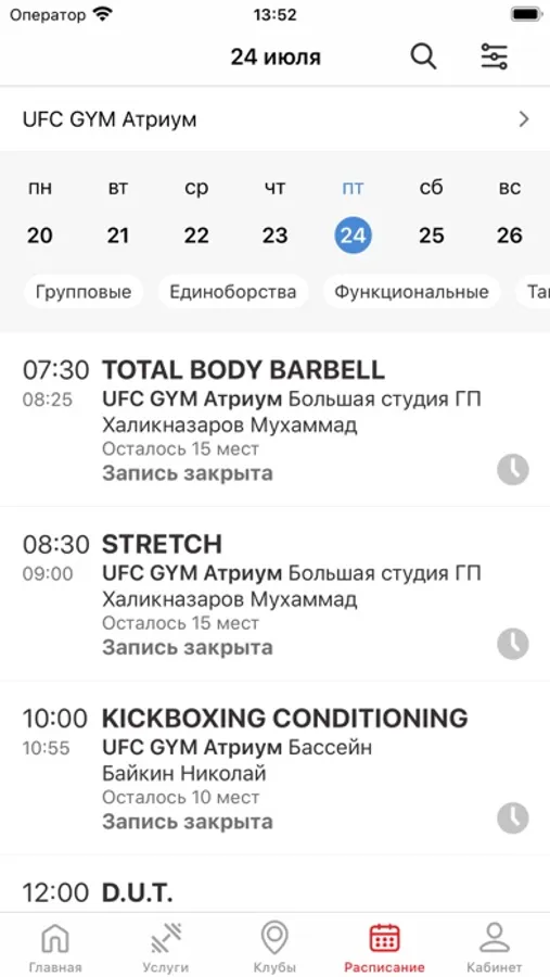 – Просматривать расписание групповых занятий в клубах
