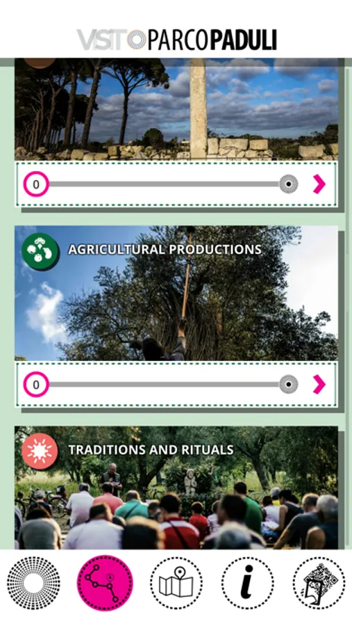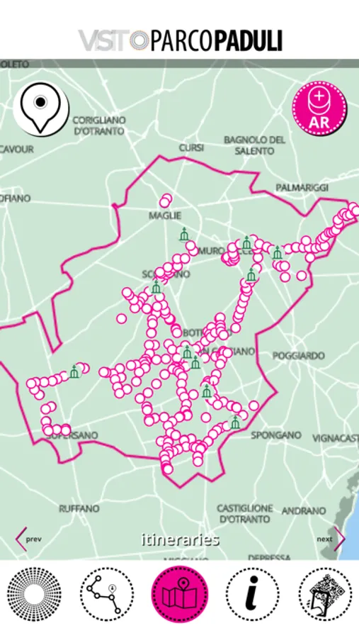VISIT PADULI is an app in Augmented Reality that, in a "game-like" way, will guide you through the discovery of more than 300 assets classified as botanical, architectonical, geological and anthropological. You will be able to explore freely an intricate labyrinth of rural roads and the park will become the place where, through the app's narrative, you will uncover a complex and mysterious environment, a true open-air museum.