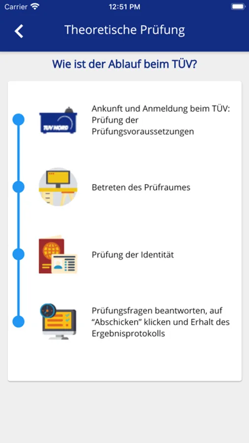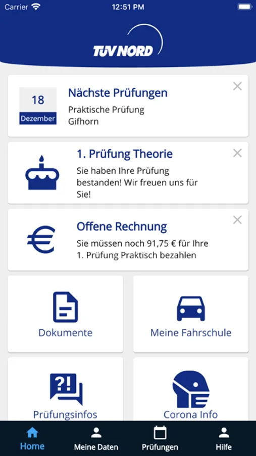 Die App Fahrschülerservice von TÜV NORD Mobilität bietet hilfreiche Informationen rund um die Führerscheinprüfung. Insbesondere wird nach eigener Verifizierung der Prüfauftrag angezeigt, Terminerinnerungen und Wegbeschreibungen zu den Prüfungen werden mit Informationen zum Ablauf der Prüfung gegeben, ergänzt durch hilfreiche Tipps und Tricks. Auch die Prüfungsgebühren können direkt online aus der App beglichen werden. Natürlich sind sämtliche Dokumente wie zB. Prüfprotokolle und Rechnungen online abzurufen.