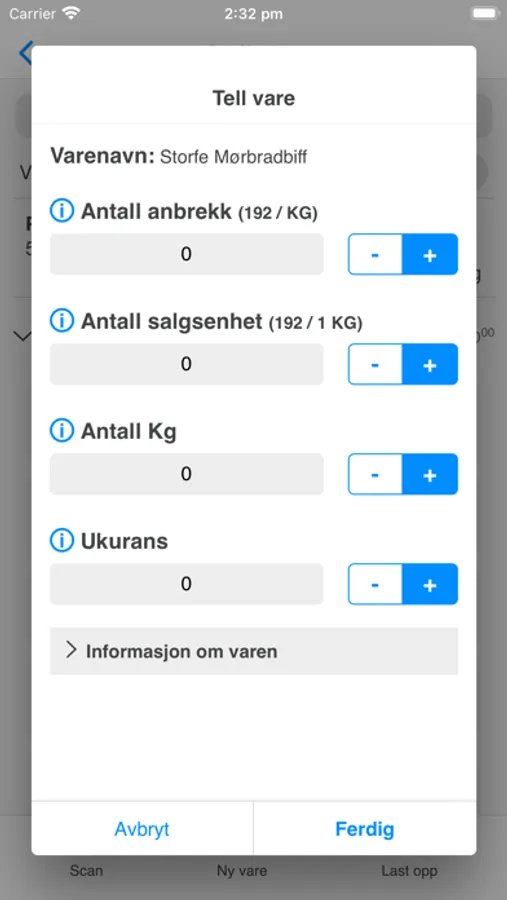 Med Millum sin app for varetelling kan du gjennomføre din varetelling sømløst og enkelt uansett hvor du er. For å gjennomføre en varetelling via appen er du nødt til å starte / hente en varetelling fra Millum Procurement. Du logger inn med ditt Millum Procurement brukernavn og passord for å få tilgang.