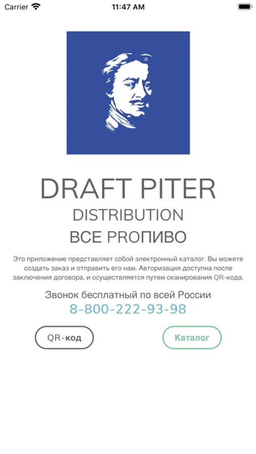 Авторизация в программе доступна после заключения договора с поставщиком (дистрибьютором), и осуществляется путём сканирования QR-кода, полученного у поставщика.