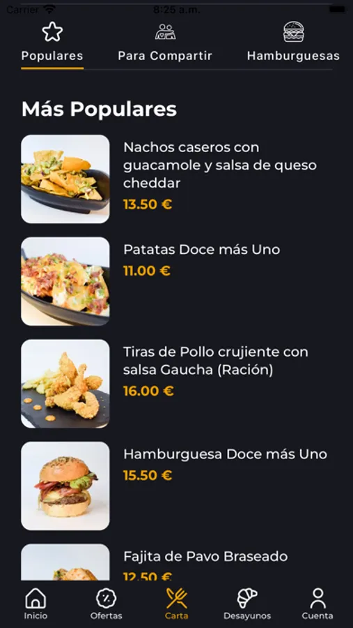 - Más de 60 referencias de comida para llevar y a domicilio.