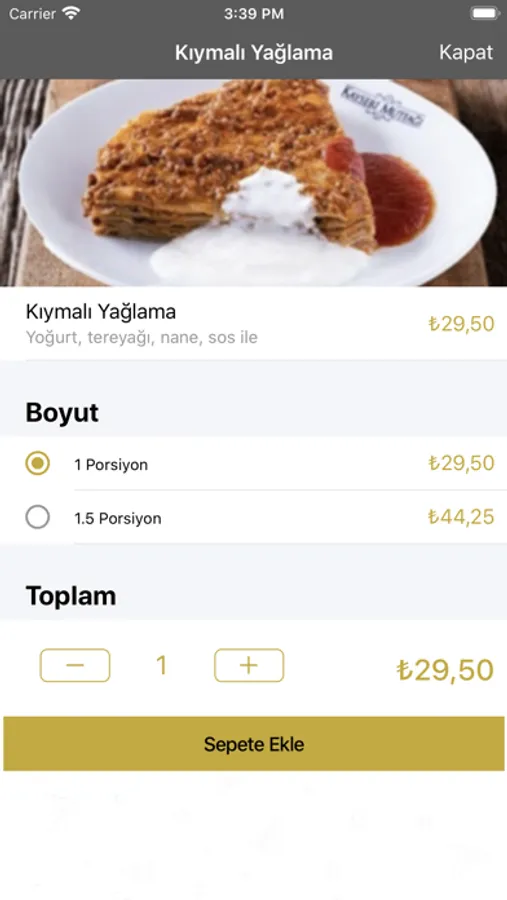 Kayseri Mutfağı Online Sipariş Uygulaması