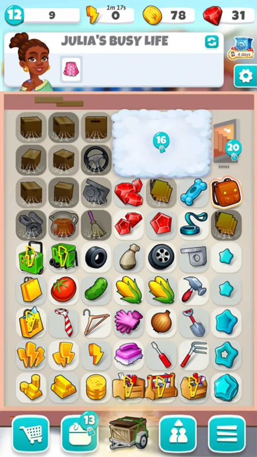 Level up by filling orders while you discover and merge hundreds of exciting items from the small-town shop. How many screwdrivers do you have to merge to find an electric drill? How many items does it take to fill an order for chilled champagne and strawberries? How does merging hangers lead to one of the fiercest pair of high heels ever seen in a game?