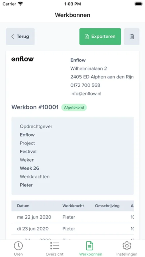 Maak de productiviteit van jouw bedrijf inzichtelijk met urenstaat. Gemakkelijk uren bijhouden voor werkkrachten, werkbonnen digitaal laten aftekenen op locatie & alles eenvoudig exporteren voor de administratie.