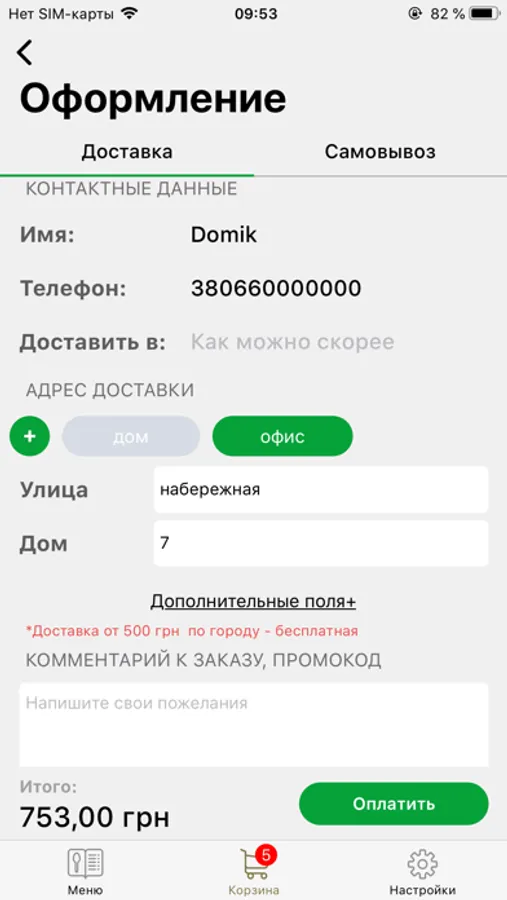 • встановити час, в який ви б хотіли забрати замовлення з нашого закладу;