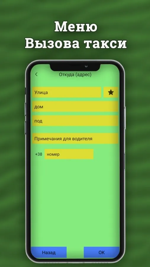 - Хранение истории заказов (позволяет повторить поездку или вызвать такси в обратном направлении).