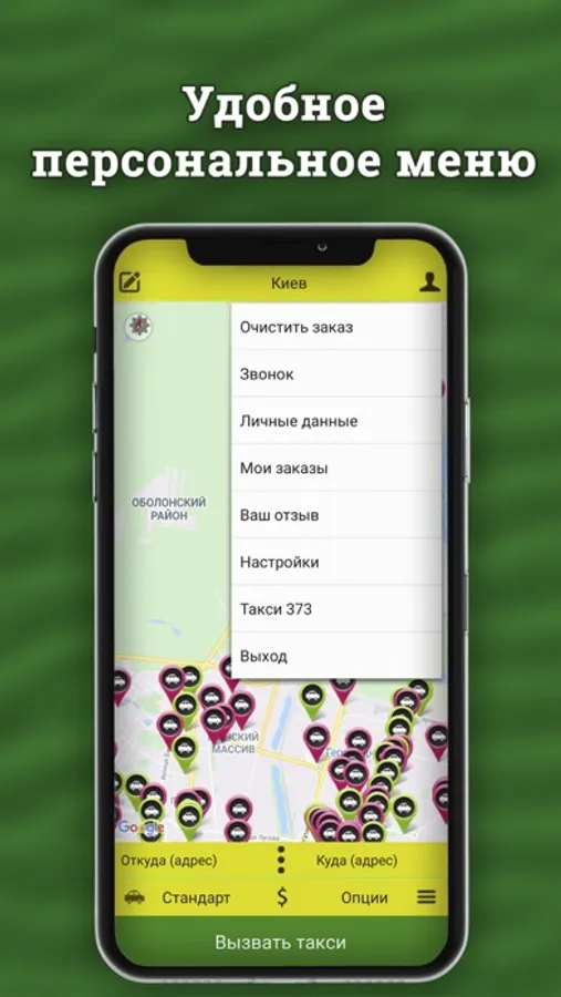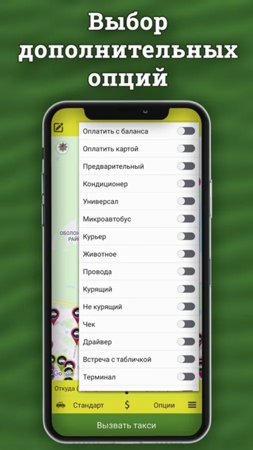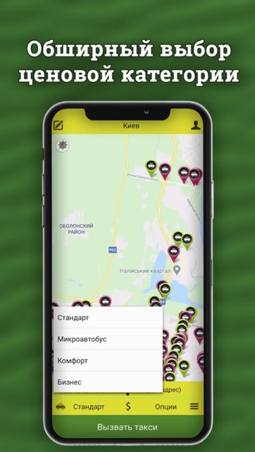 - Возможность вызвать такси разного класса (Эконом, Стандарт, Микроавтобус, Комфорт).
