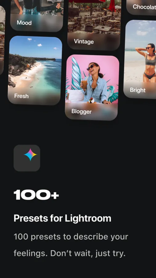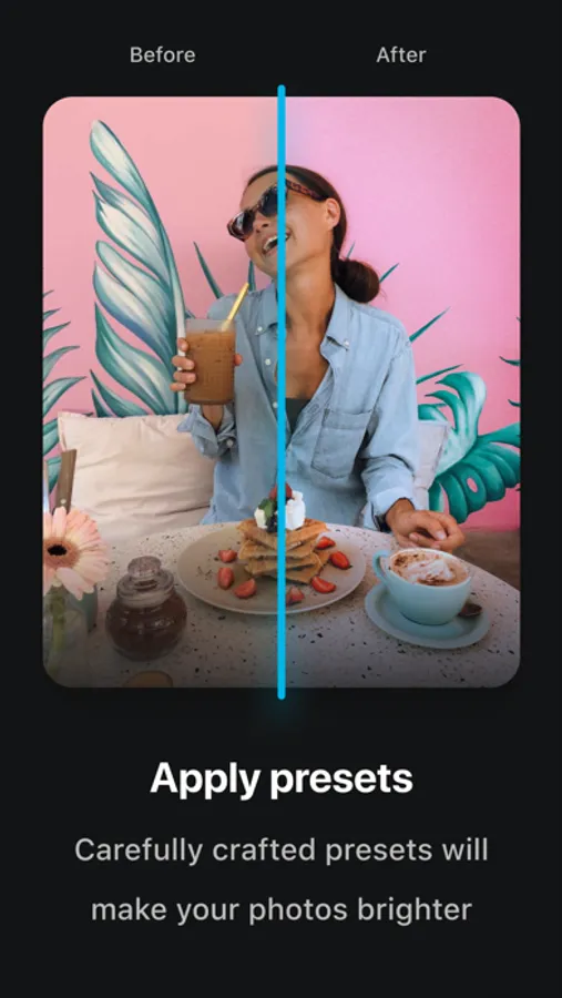 We developed more than 100 unique presets for you. Every day, we keep adding new presets that you can use for free. The preset collection is constantly updated, which means we help you stay on-trend, always. Because we care about our users, we keep the app 100% ad-free.