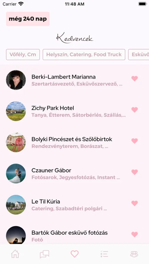KEDVENCEK - egy helyen tudod gyűjteni a kedvenc Szolgáltatóidat a kedvencek menüpont alatt