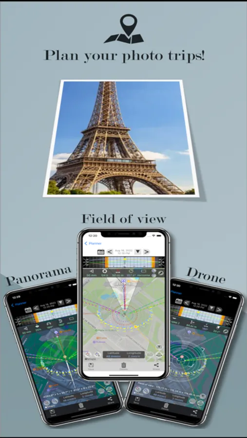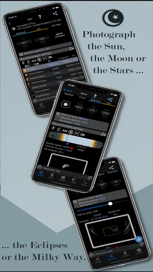 This application will help you to abandon the automatic mode of your cameras that doesn't do everything and control everything. For more experienced photographers, it can simplify the settings by doing the calculations for you (/! Camera adjustment must be done manually). It includes more than 40 tools and will also allow you to plan your photo outings from home by locating the places and positions of the Sun, the Moon or the Milky Way.