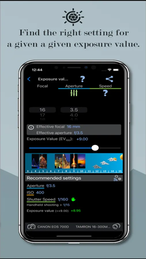 /! THIS IS NOT AN APPLICATION TO TAKE PHOTOS, BUT TO HELP TO PERFORM SETTINGS IN MANUAL MODE ON A CAMERA OR A DEDICATED APPLICATION.