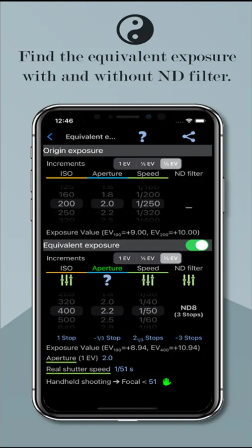 - Calculate the alternative/equivalent exposure (manages the ND filter and long exposures)