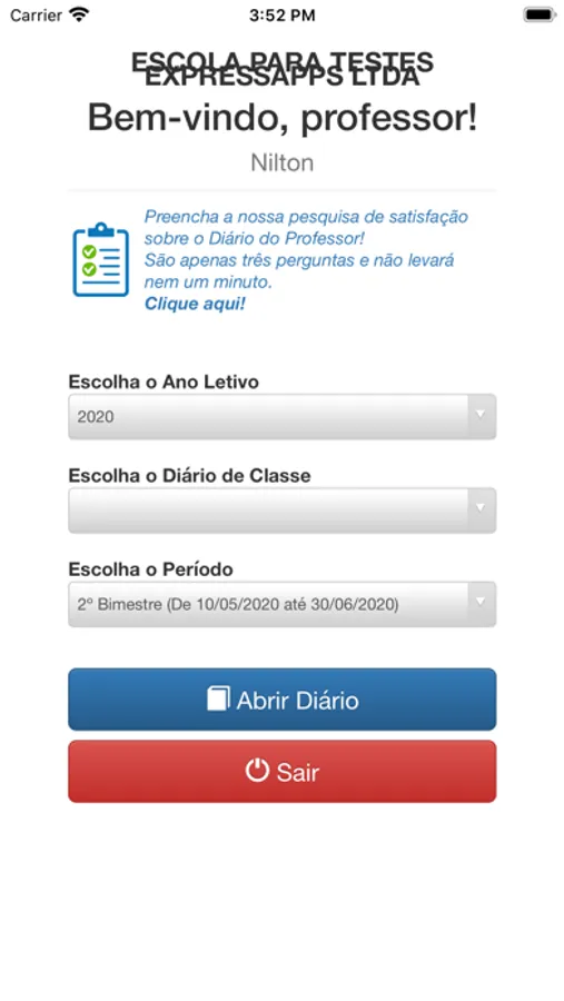 O aplicativo permite o acesso às informações de acordo com o diário selecionado.