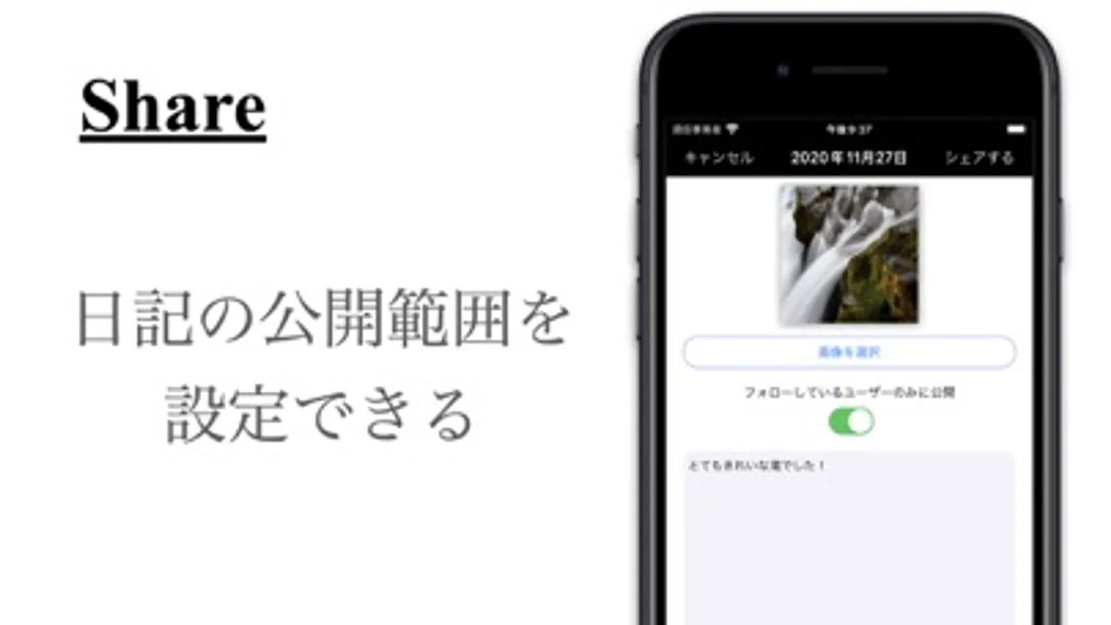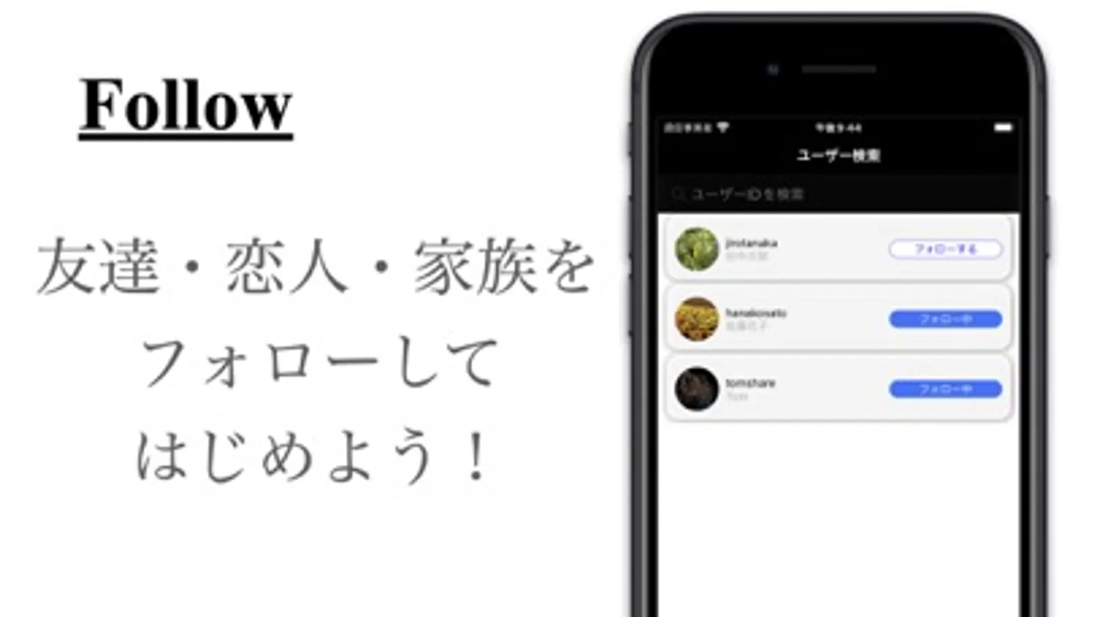 大事な人との思い出を投稿して、フォローしている人と日記を共有することができます。