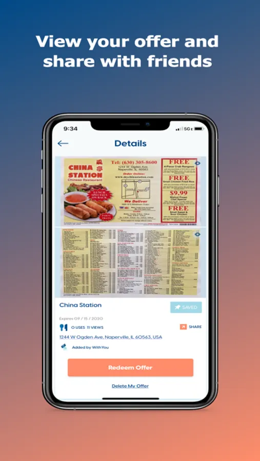 WithYou offers an easy way for you to save, share, and redeem any offer that you receive in the mail. Always stay up-to-date with your local businesses and never forget your offer or coupon at home again! Go ahead, recycle that old coupon book, and start saving money and getting organized through the WithYou app today.