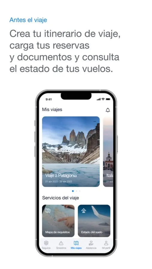 - Cualquier viajero, asegurado o no, puede crear su itinerario de viaje, destino a destino, cargando las respectivas reservas de alojamiento o transporte, cualquier documento de identidad, pasaporte sanitario o entradas a eventos. Además, es posible conocer el estado de tus vuelos.