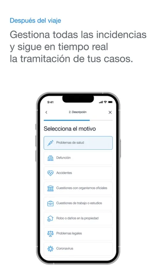 - Después de viaje: comunica tu siniestro y sigue en tiempo real la resolución de cada caso.