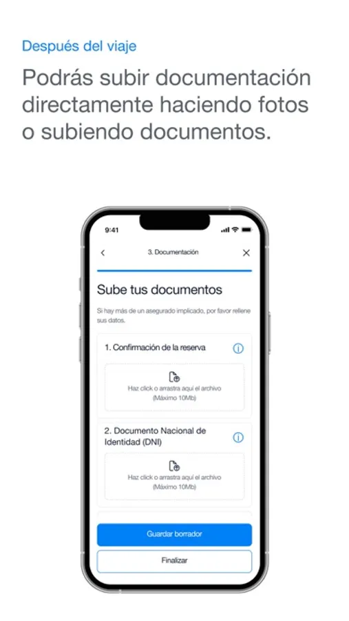 - Almacena todos tus seguros de viaje para tener siempre a mano toda la información y condiciones.