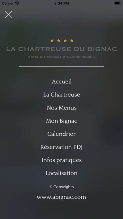 My Bignac est une application dédiée aux clients de La Chartreuse du Bignac, hôtel 4 étoiles et Restaurant Gastronomique située en Dordogne, en France.
