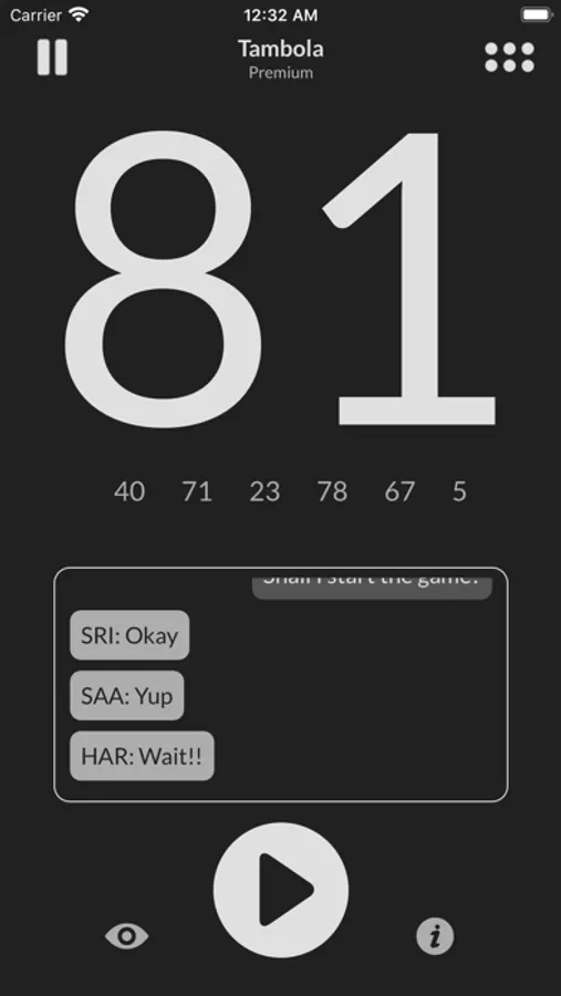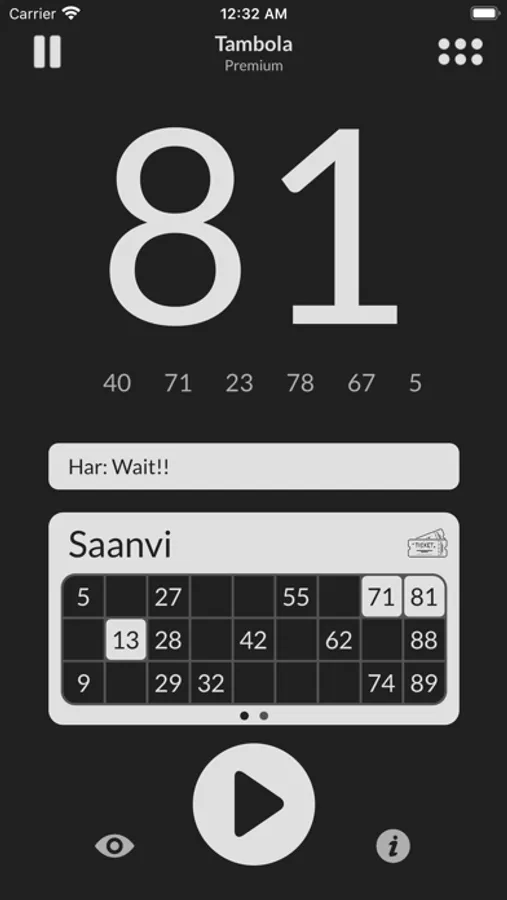 Makes host life easier as app checks 46 winning patterns (i.e, first line, corner, safe, fence, queen corner, king corner, etc) in all tickets.