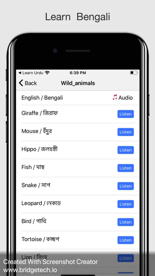 This learn Bangla application turns learning into a fun-filled experience. Learn Bangla through English using quizzes, flash cards and by recording your own phrases. You will be able to learn to speak Bengali easily and fast at home, while being entertained at the same time. Not only that you’ll learn to speak Bengali, but you will learn spoken/conversational Bengali as well!