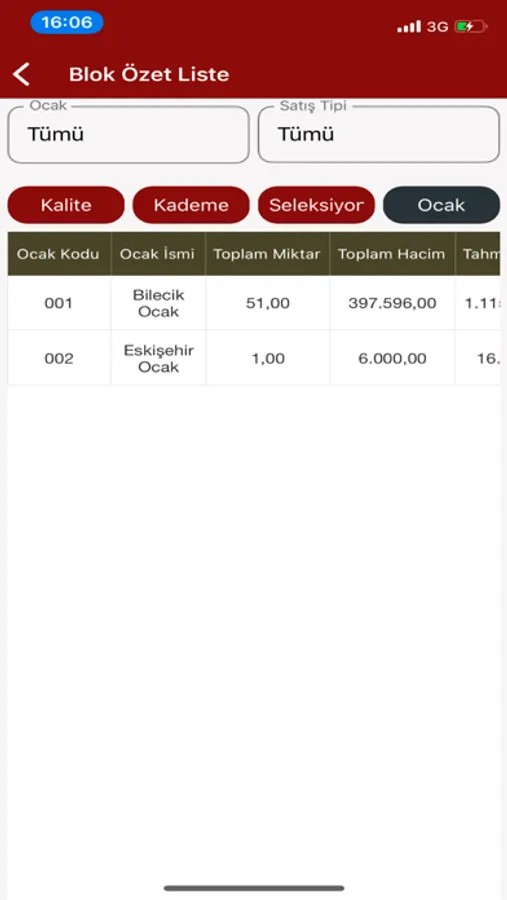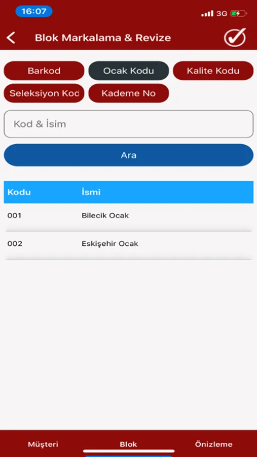 Birden Fazla Ocak Sahibi Olabilirsiniz. Ocak 'ta Çıkarılan Tüm Blokları Anında Alfa Numerik Numaralandırıp Yılına Göre Kaydını Oluşturabilirsiniz. Aynı Anda Yılına Göre veya Toplam Olarak Kaç Adet Blok Üretilmiş Tahmini Tonaj'ını Reel Tonajını Konumunu,Seleksiyon, Kademe ve Kalitesini Anında Sahada Uygulama Üzerinde Belirleyebilirsiniz. Ayrıca En, Boy ve Yükseklik Girişi Yaptığınızda Uygulama Otomatik Olarak Tahmini Tonaj ve Hacim Hesabı Yaparak Size Bir Öngörü Sunmaktadır. Ayrıca Üretilen Blok Resmini Uygulama Sayesinde Fotoğraflayıp Arşivleyebilirsiniz. Ürünlerinizi Sahada Müşterinizle Birlikte Markalayabilir, Revize Edebilirsiniz. Tüm Bu İşelmlerinizi İstediğiniz Yerden İster Özet İster Detaylı Olarak Raporlayabilirsiniz.