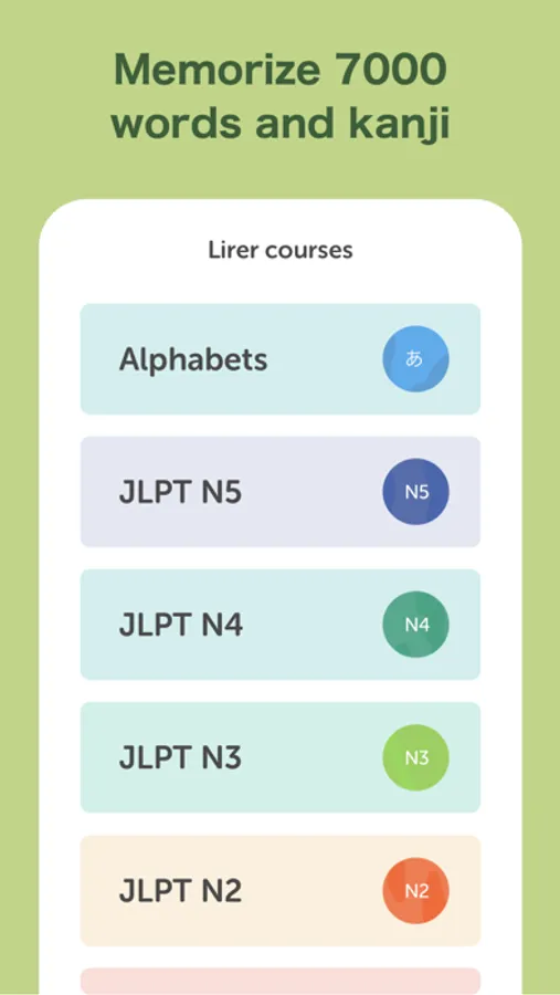 * Explanation and exercises for all the Japanese words of JLPT N5, JLPT N4, JLPT N3, JLPT N2, JLPT N1.