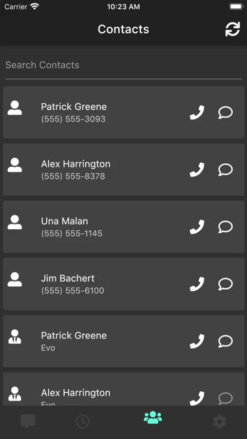 The Evo Voice app allows businesses using the Evo Voice communication platform to make and receive phone calls on their business number and chat directly with their call answering team.