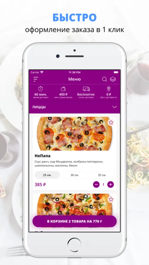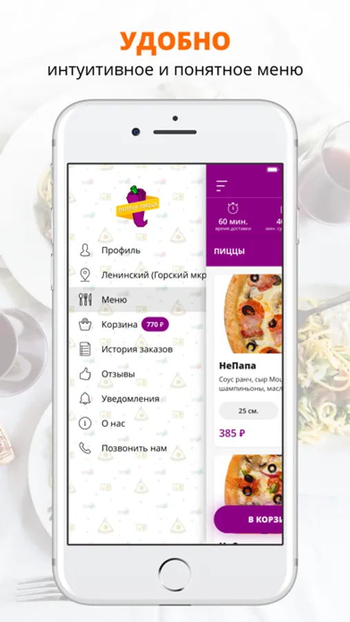 В приложении Пеппер Пицца вы можете выбрать пиццу на любой вкус, а доставка займет не более 60 минут.