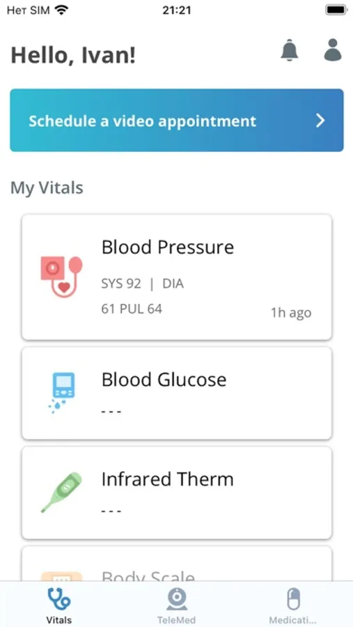 Member devices will be determined by your health care provider. Device options include blood pressure, blood glucose, thermometer, pulse oximeter, and body analyzer scale. The vital information collected in the app will be made available to your Healthcare Provider. You can see your collected vital information in the History section of the application.