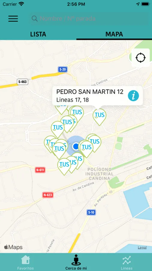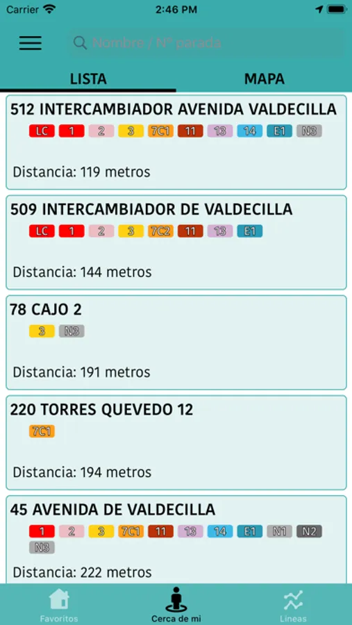 • Paradas más cercanas.