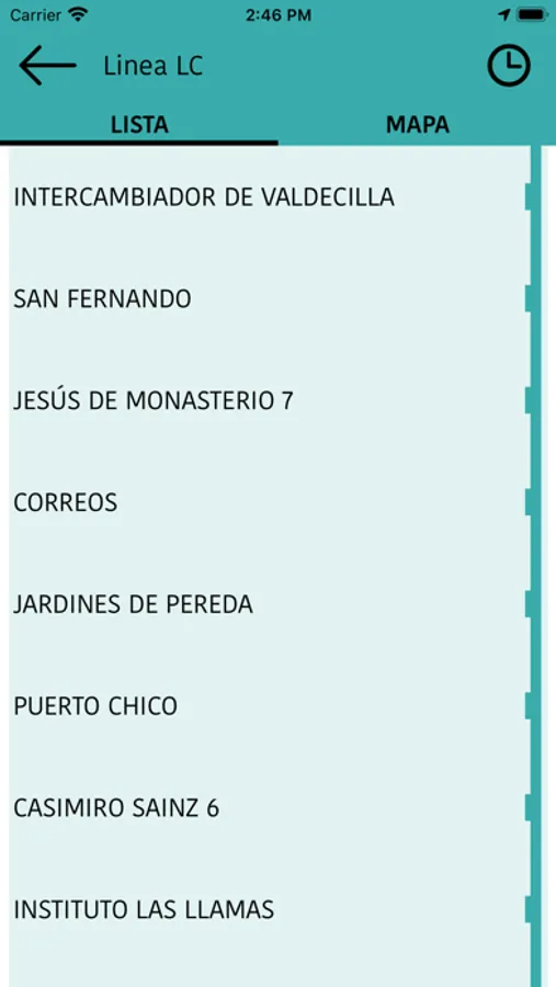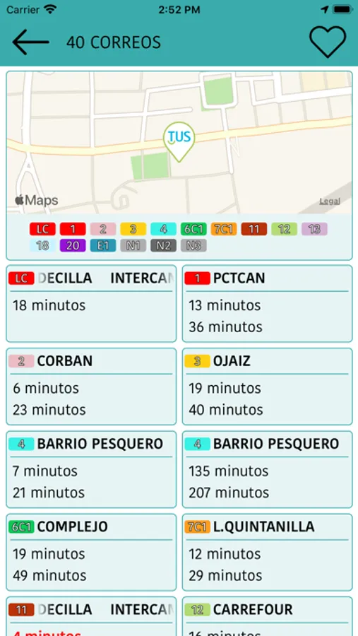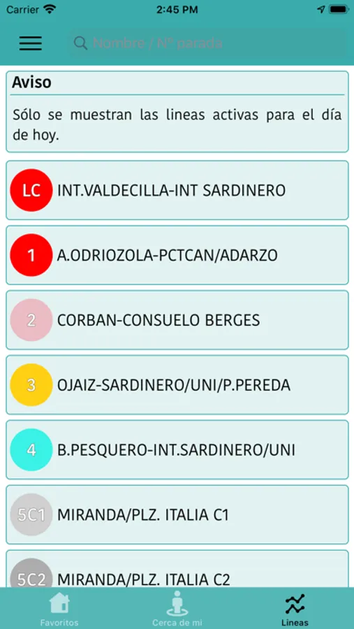 Asimismo se tiene acceso a la información relativa a los horarios de salida de las cabeceras de cada una de las líneas.