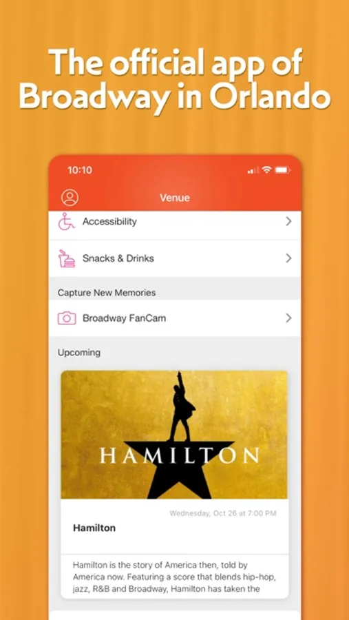 Broadway in Orlando is proud to announce a new app! With the aid of the app, fans may now connect their Ticketmaster account for mobile entry. In additional to accessing to your Broadway in Orlando tickets, the app provides information and news to make your visit to the theatre easier and more enjoyable.