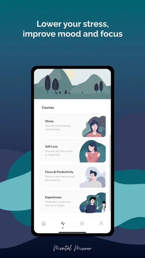Mental Mirror helps understand what affects your day and find a way to manage it with a help of Guided meditations and techniques. You can imagine it as a Mental Health Gym. You can focus on a single emotional state or build a mental wellness routine to feel better.