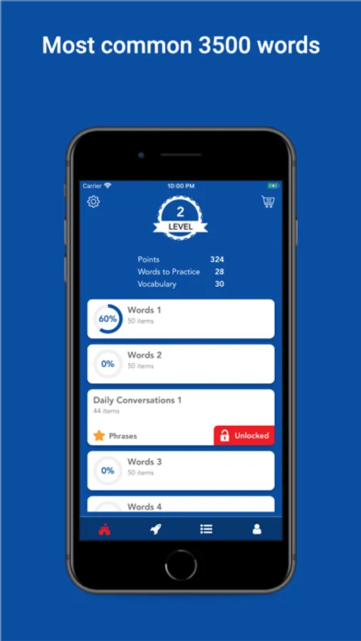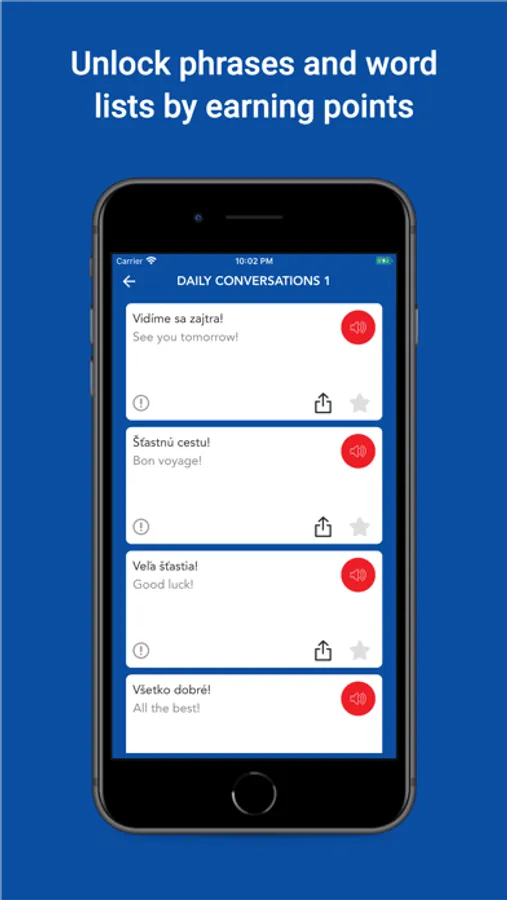 - Earn points by learning and practicing. Then unlock phrases and word lists.