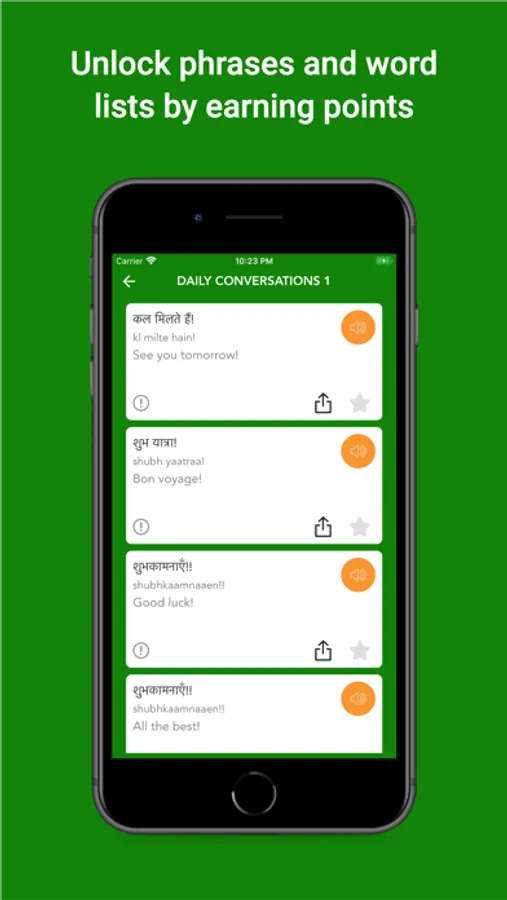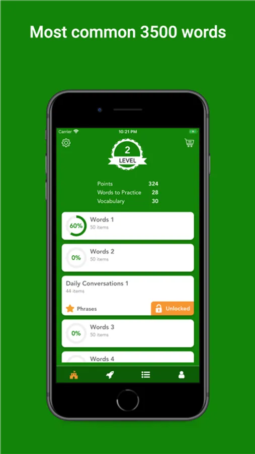 - Earn points by learning and practicing. Then unlock phrases and word lists.