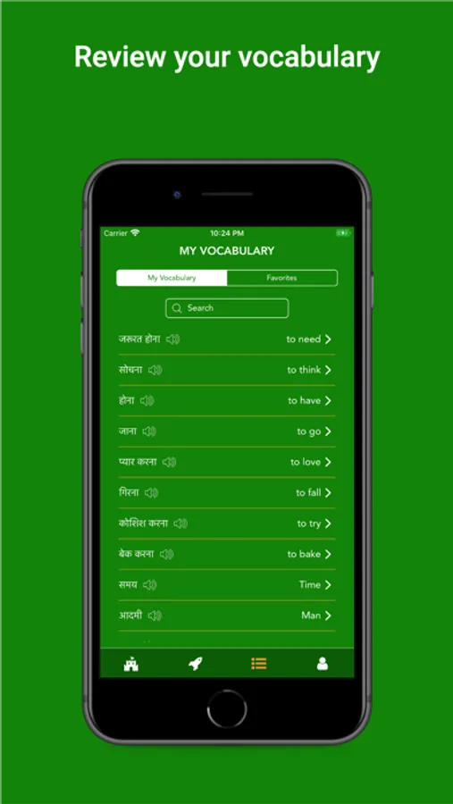 Learn 3500 Hindi nouns, adjectives and verbs to enrich your vocabulary. Memorize most common Hindi words. Listen pronunciation of the words. Learn with word games, phrases and word lists. Use flash cards to master frequently used, core vocabulary.