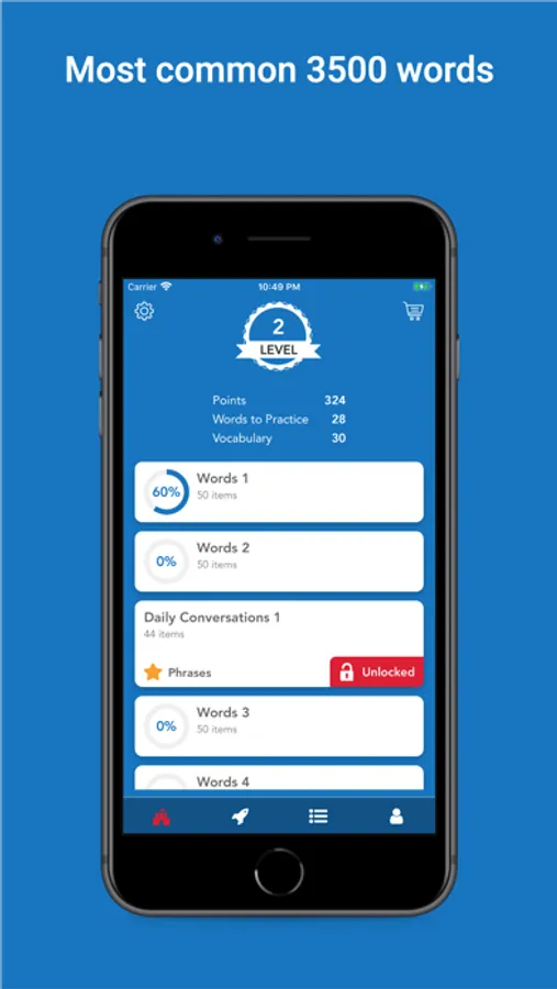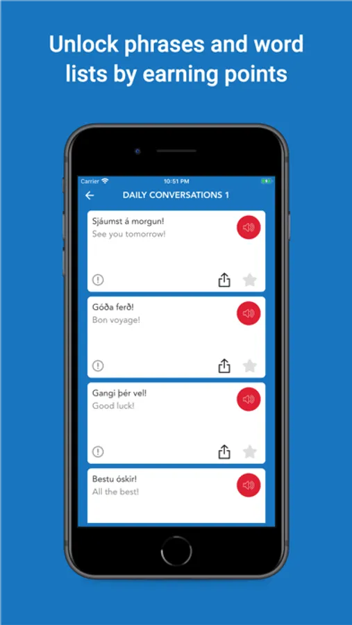 - Earn points by learning and practicing. Then unlock phrases and word lists.